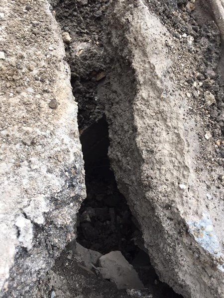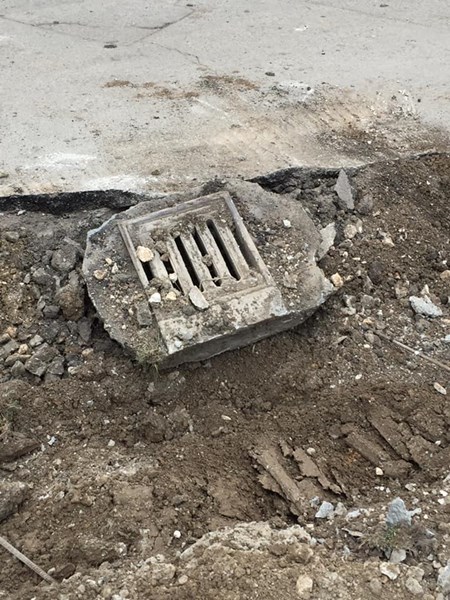 "Шахта до тротоара на бл. "Енергетик 1", разбита, със счупени бетонни тръби и задръстена с камъни и пръст.