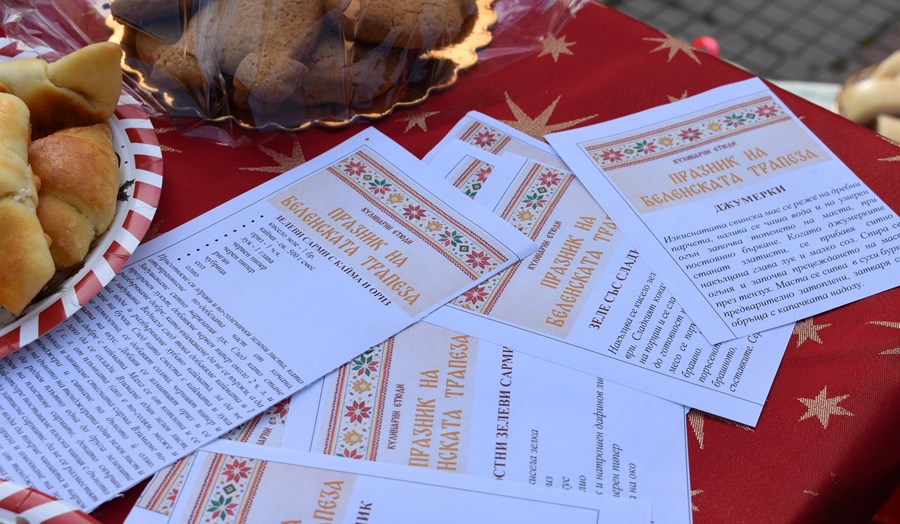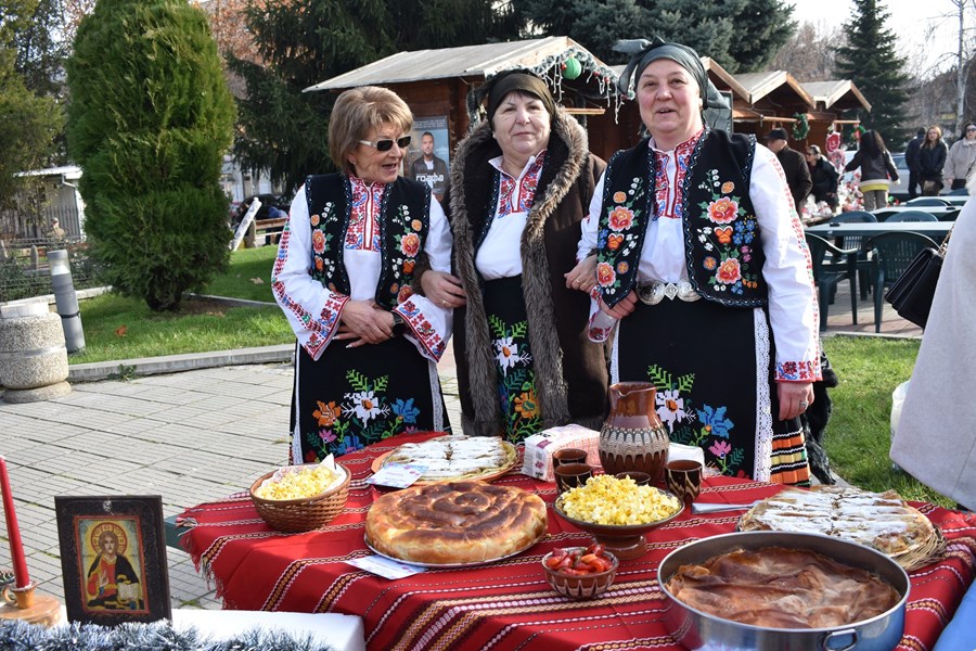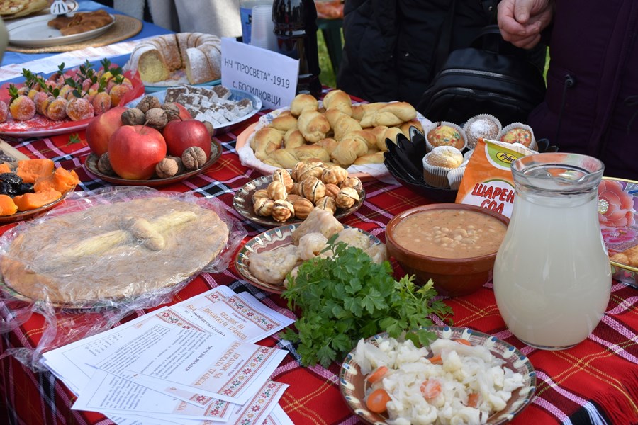 Те демонстрираха автентично майсторство с домашно приготвени ястия, сред които постни сармички, пълнени чушки с боб, кисело зеле със сладък кокал, джумерки, обредни пити, вити баници и макарина. Трапезата бе отрупана и със сезонни десерти – тиквеници, сладкиши, меденки, локумки, орехчета и фунийки.