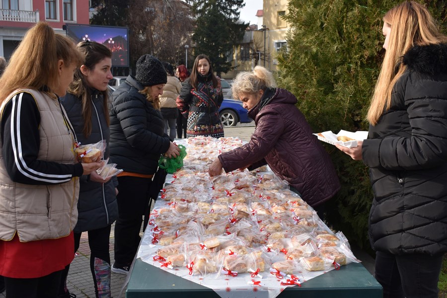 Раздадоха 1000 парчета баница с късмети на площада в Бяла