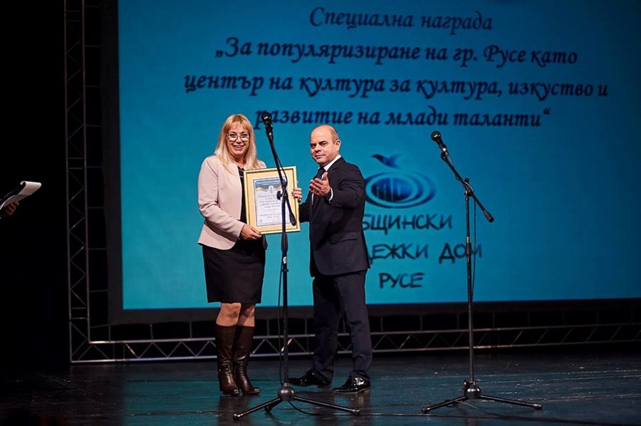 - За популяризиране на гр. Русе като център за култура, изкуство и развитие на млади таланти - Специална награда за Общински младежки дом – Русе