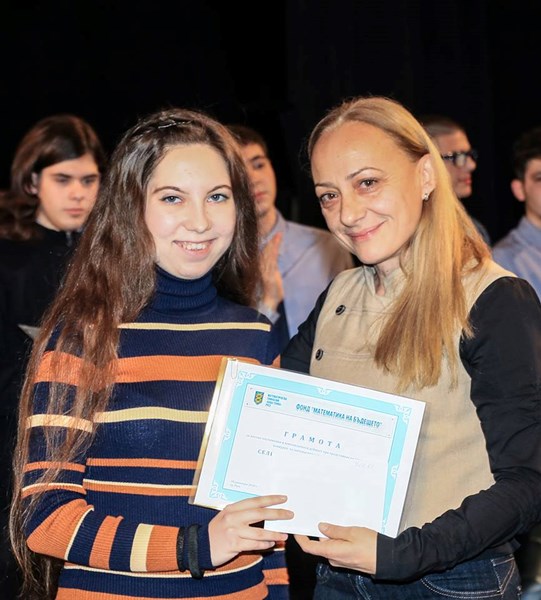 Награди от фонд „Математика на бъдещето” получиха Виктор Кожухаров от 10 „а” клас, Селин Шемсиева от 12 „д” клас и Венелин Георгиев от 11 „г” клас.