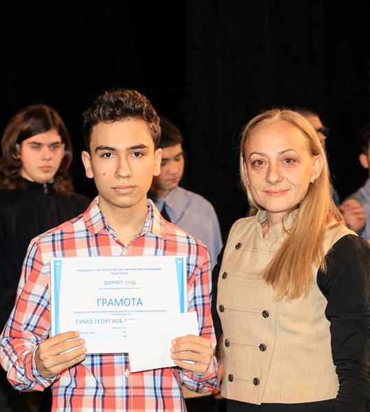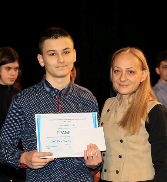 - ПЪРВО МЯСТО и ГОЛЯМАТА НАГРАДА на Националния кръг на Международния конкурс “Методология и информационни технологии в образованието” в направление „Математика и изкуство“ – Проект “Танцувай с мен”, 5 февруари 2018 г., гр. София;
