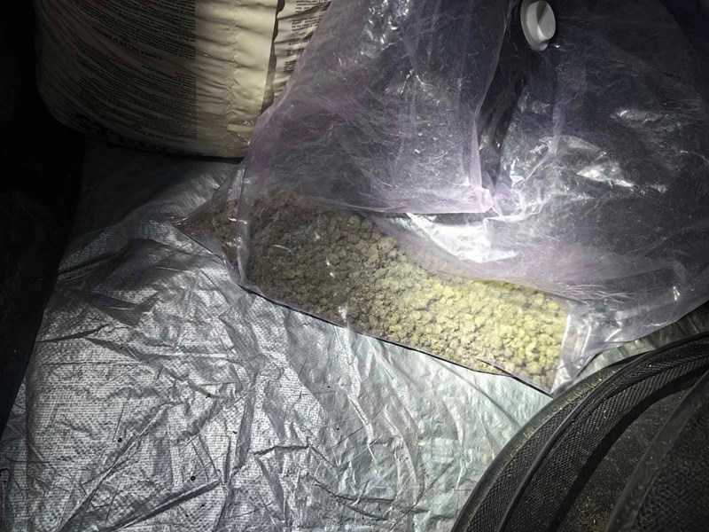 В хода на полицейските действия са извършени претърсвания на двата адреса. На местата криминалистите са открили и иззели растения от рода на конопа, които са били в различни стадии на растеж, както и голямо количество суха маса марихуана.