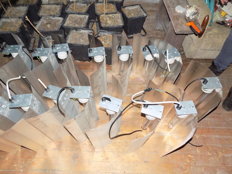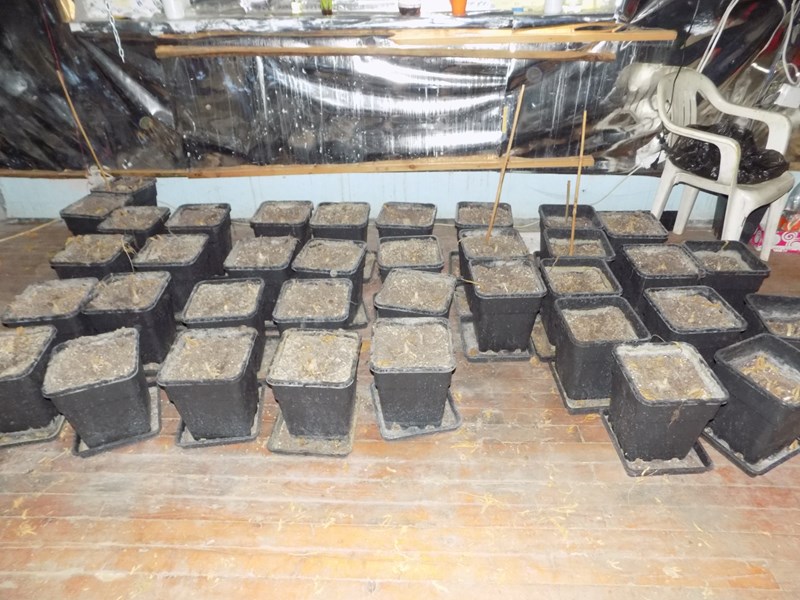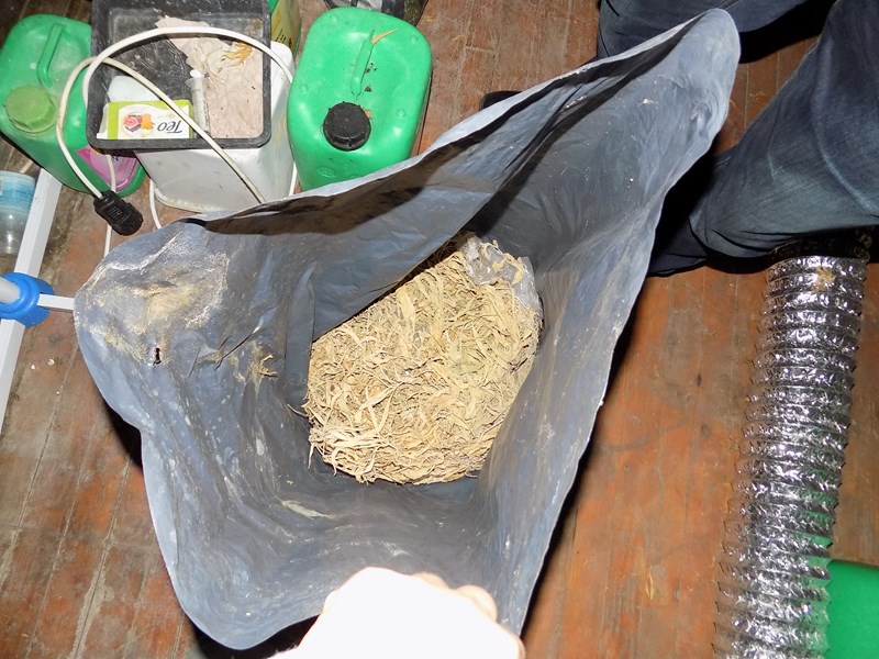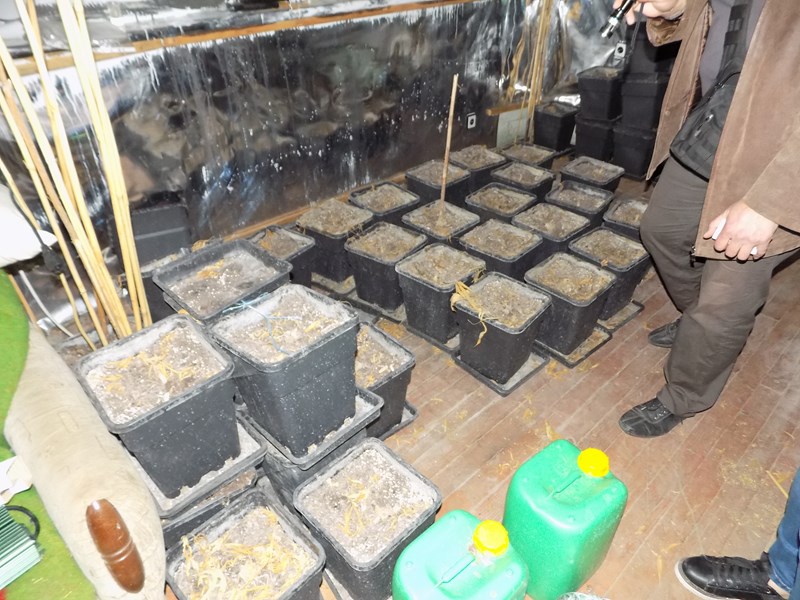 При последвалите процесуално- следствени действия са намерени и иззети: нагревателни лампи, вентилационна инсталация, токоизправители, термометри, пет пластмасови туби с торов разтвор, около 5 кг суха зелена тревиста маса, реагираща на канабис, както и 166 саксии с корени от растения.