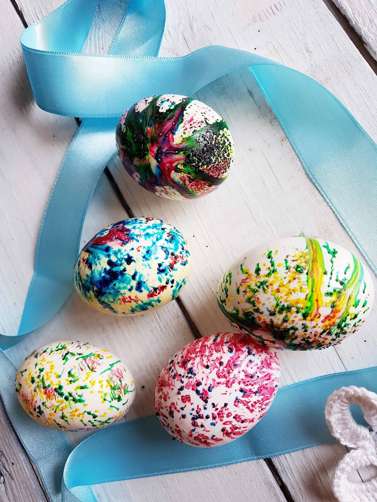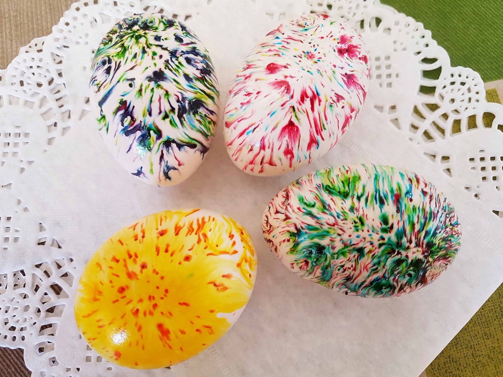 | На тази снимка, някои яйца са правени с дантела. Виж по долу |