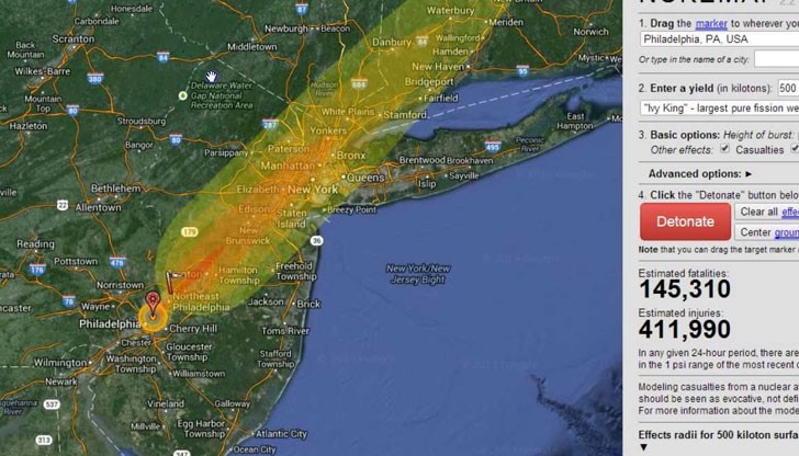 Ядрен историк разработи карта, която визуализира ефекта от атомна бомба ако тя падне върху град. "NukeMap" позволява на потребителите да изберат град и след това да пуснат атомна бомба върху него.