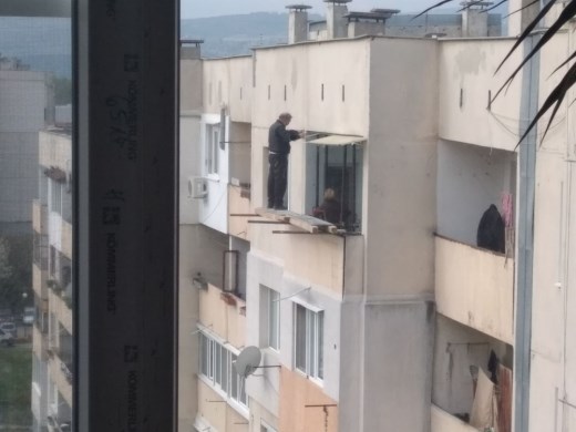 Снимка на мъж от столичния квартал "Дружба", който оправя навес над балкона си обиколи социалните мрежи и се превърна в истинска сензация.