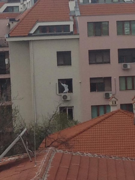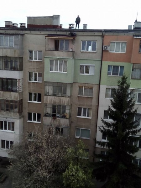 Страшното в случая е, че този софийски мъж се е покатерил на перваза на апартамента си, който се намира на последния етаж.