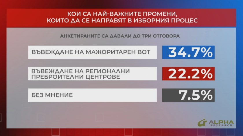 Ето и какви са нагласите на хората за най-важните промени, които трябва да се направят в изборните процеси. Участниците в допитването са давали до три отговора.
