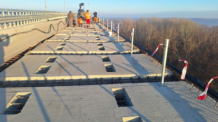 В момента се извършва подмяна на стоманобетонни панели във втория участък на съоръжението. Строителните дейности включват заваряване на болтови дюбели, изграждане на кофраж и армировка. Работи се и по замонолитване на бетонните панели.