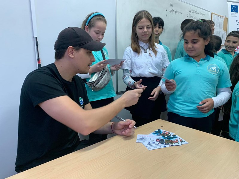 В Деня на толерантността над 20 доброволци от различни класове на училище “Олимпи Панов” разговаряха с Теодор Цветков. По време на първата опознавателна среща през октомври те зададоха много въпроси на плувеца - рекордьор на Гинес и получиха картички за спомен от гостуването му. Теодор тогава отправи предизвикателство към тях - сами да помислят за доброволческа инициатива, която да реализират заедно. В отговор децата дадоха много идеи, свързани с екология, толерантност, спорт, творчество, опазване на ресурсите и др. Доброволците гласуваха коя от идеите да реализират в близко бъдеще и единодушно решиха да зарадват възрастни хора в нужда с коледни картички, съобщиха от Община Русе.