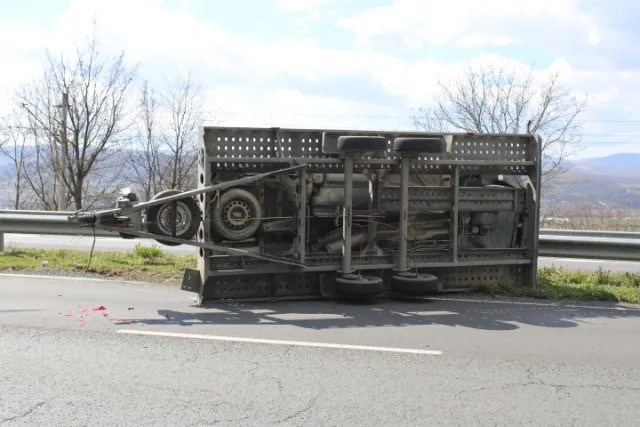 Колата се е завъртяла в обратна на движението си посока. Превозваният на платформата автомобил се е опрял на мантинелата. Нанесени са му щети.