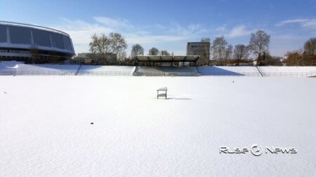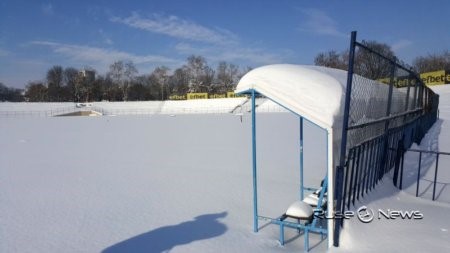 Реалната картина обаче далеч не е толкова оптимистична. Стадионът стои затрупан от сняг, никой не работи по него. Техниката също почива под снежните преспи, по игрището не е стъпил човешки крак от началото на снеговалежа.