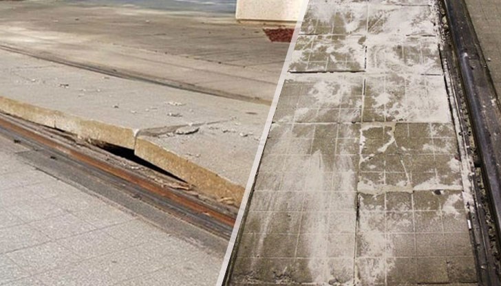 През уикенда голяма плоча между релсите в района на пл "Славейков" се надигна, а настилката изскочи. В понеделник плочата вече не стърчеше, но настилката беше изпочупена от отстраняването на проблема, предава mediapool.bg.