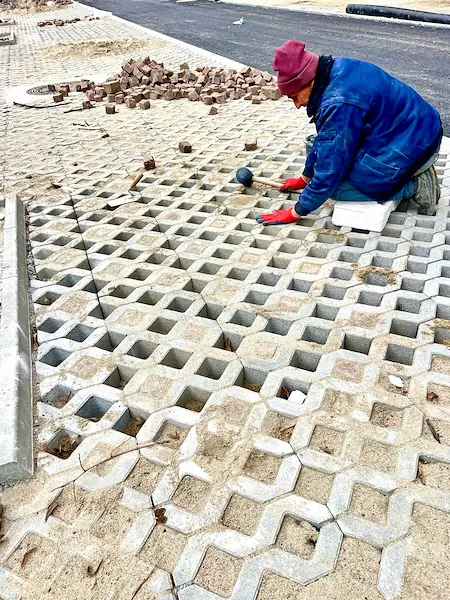 Активна работа тече и в квартал "Родина", където продължават довършителните строителни дейности по благоустройството на околоблоковото пространство на блок "Странджа планина". Там се оформят бетонните паркинг елементи в зоните за паркиране, полагат се ограничителни бетонови бордюри около дърветата и се подготвят тротоарните площи за полагане на нова настилка. Изградена бе и пешеходна алея от бетонова настилка за достъп от улица "Никола Й. Вапцаров" до вход "А" на блок "11" в квартал "Дружба" 3.