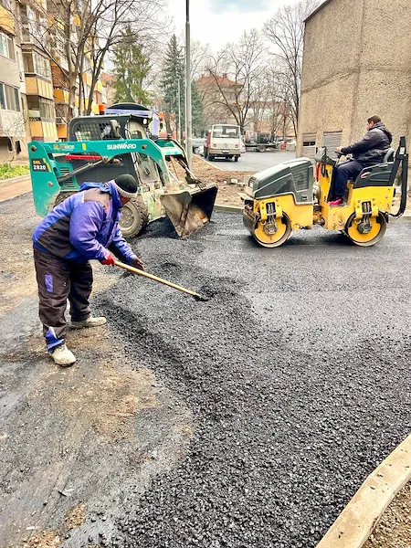 През изминалата седмица стартираха неотложни аварийни ремонти на разрушени пътни настилки на места по протежение на булевард "България". Паралелно с това продължават строителните работи по ремонт на улица "Козница планина", където се извършва полагане на първи пласт неплътен асфалтобетон (биндер).