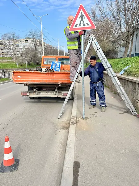 Извършено бе монтиране на 68 пътни знака и ограничителни табели, както и 17 пътни сигнални лампи за въвеждане на временна организация на движението на пътното платно по дигата на язовира в Лесопарк "Липник".