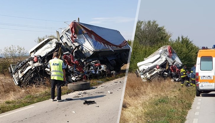Ударът е бил изключително силен. Двата ТИР-а са се блъснали от шофьорската страна и тази част от кабините им е напълно размазана. Телата на загиналите водачи са размазани и все още са в камионите, а пожарникарите режат ламарините с флексове, за да ги извадят.