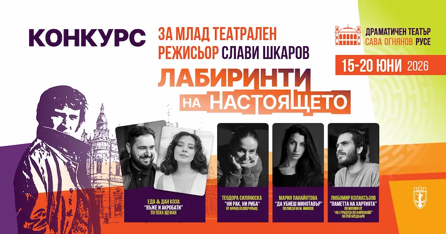 От ръководството на Драматичен театър „Сава Огнянов“ в Русе съобщиха, че са избрани четиримата финалисти в осмото поредно издание на националния конкурс за млад театрален режисьор „Слави Шкаров“. Събитието, което се утвърди като водеща и иновативна платформа за ново театрално мислене у нас, ще се проведе в дунавския град от 15 до 20 юни 2026 година.