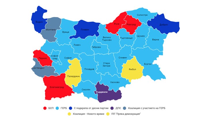 Като се вземат предвид резултатите от първия тур преди седмица формацията на премиера Бойко Борисов завършва местния вот през 2019 г. с кметове в общо 17 областни центъра, като в два - Кюстендил и Монтана, тя е част от широки коалиции, подкрепящи настоящите кметове за спечелването на поредния им мандат. В шест града досегашните кметове от ГЕРБ спечелиха отново поста още на първия тур с внушително мнозинство. Въпреки успехите обаче данните и от двата тура сочат отлив на гласове за управляващите, пише Дневник.