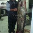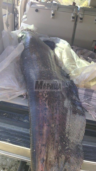 Огромната риба се закачила на въдицата на Иван Грозев от Пловдив в събота. Чудовището клъвнало на каракудка. Около 9:45 часа удари и започна битката. "Бяха два часа и половина мъки, докато го изкарам", разказа Грозев, който е опитен рибар. Мъжът бил с лодка в ледените води.