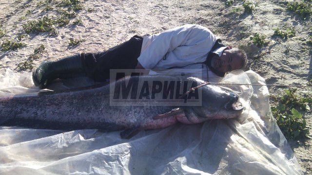 "За първи път вадя толкова голям сом. Тежи 115 кг и е дълъг два метра и 76 см, разказа рибарят. Той обясни, че през 2011 г. отново извадил от водите на „Пясъчник” огромен сом, но тогава той бил едва 70 кг."
