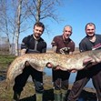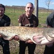Сомът тежи над 70 килограма и е дълъг 2,25 метра. „Истинска подводница”, шегуват се риболовците.
