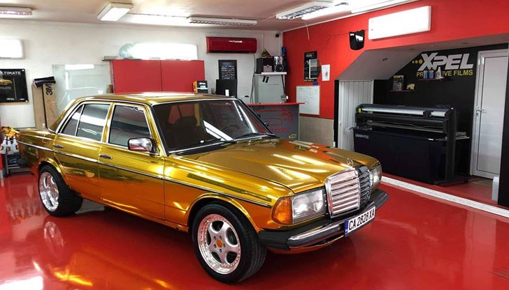 Мерцедесът – модел 123 от 1985 г., след неуморен труд вече е покрит със специално златно фолио и вече няма аналог в света. Собственикът му, който се занимава с частен бизнес, планува да го закара в Англия, за да го показва по изложби. Първоначално той платил доста пари на „майстори“ в София, но те буквално съсипали колата. „Вече имахме реализиран проект за позлатяване на „Ламборгини Хуракан“ на един индиец и човекът ни потърси, за да помогнем", разказва Румен.