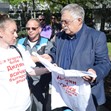 Новият директор на Фонда за лечение на деца проф. Владимир Пилософ слезе при протестиращите и получи фланелка в подкрепа на Дилян.