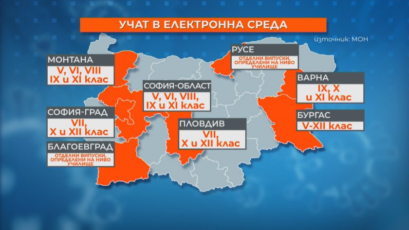 Заради високата заболеваемост редица области въведоха онлайн обучение за предстоящата седмица.