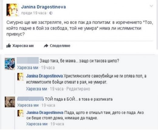 Навръх 2-ри юни, в който страната ни отбелязва и паметта на загиналите за свободата на Отечеството, тя написа изключително нелеп и обиден статус във Фейсбук по адрес на Христо Ботев.