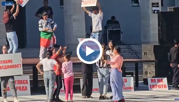"Да живее България, братя роми! Не на Еврото! Да на Българския лев, защото само левът и кючекът са български!", обяви на микрофон организатор на проявата, която е част от т.нар. "Национална стачка", провеждаща се в няколко града.