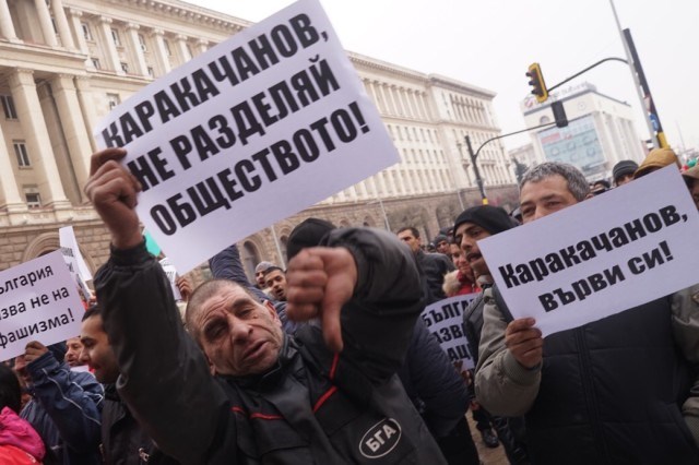 Роми с плакати излязоха на протест пред Министерския съвет, настоявайки за оставката на вицепремиера Красимир Каракачанов.
