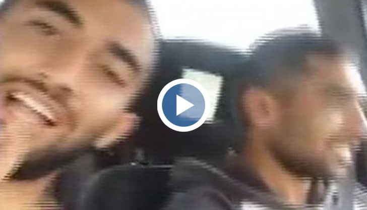"180 км за София, най-добрите, братко, яша! И продължаваме", казва мъжът, който снима в колата. Неговият приятел зад волана пък изпреварва друг автомобил отдясно.