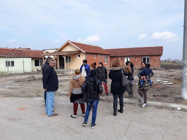 Около 40 роми с представители на правозащитна организация вече няколко часа обикалят край незаконните ромски къщи във Войводиново.
