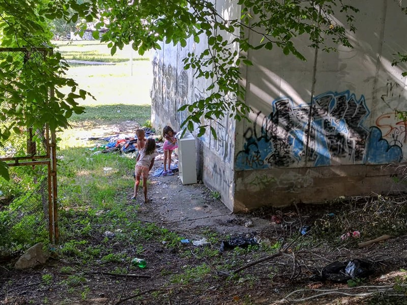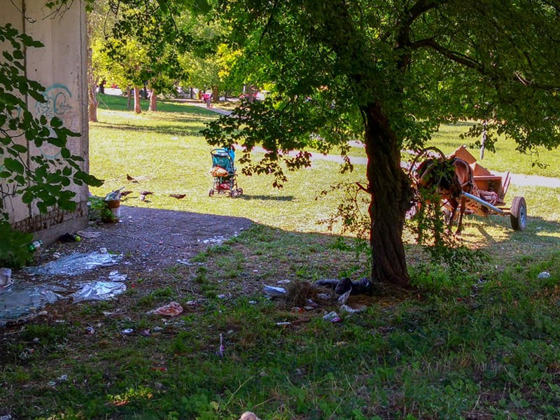 Всеки ден градинката до Блок № 18, до трафопоста става сборен пункт на многодетните семейства. Освен, че са шумни, след себе си ромите оставят купища боклуци.