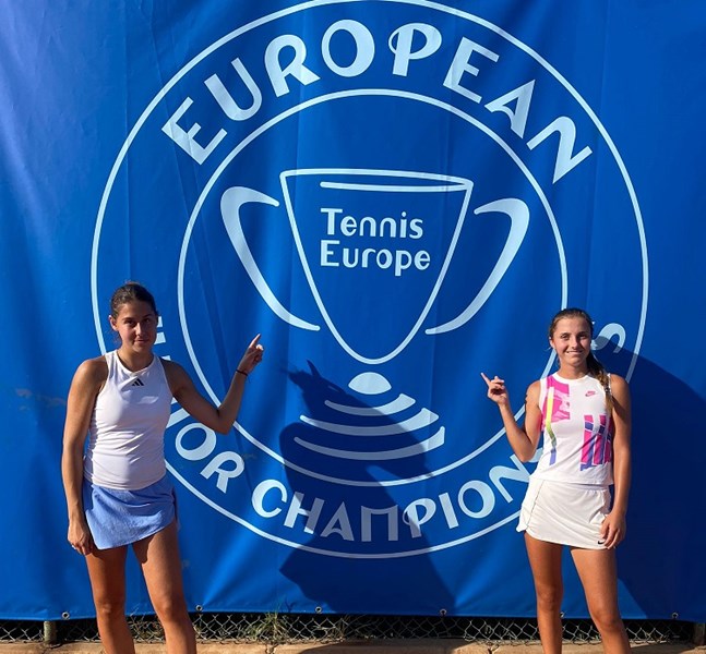 Българките победиха във финала германките Юлия Щузек и Соня Женихова с 6-2, 6-3. Така нашите момичета спечелиха титлата с пет победи при само един загубен сет. Това е първата титла на двойки за България в историята на европейските първенства, датираща от 1976 г., информира БГНЕС.