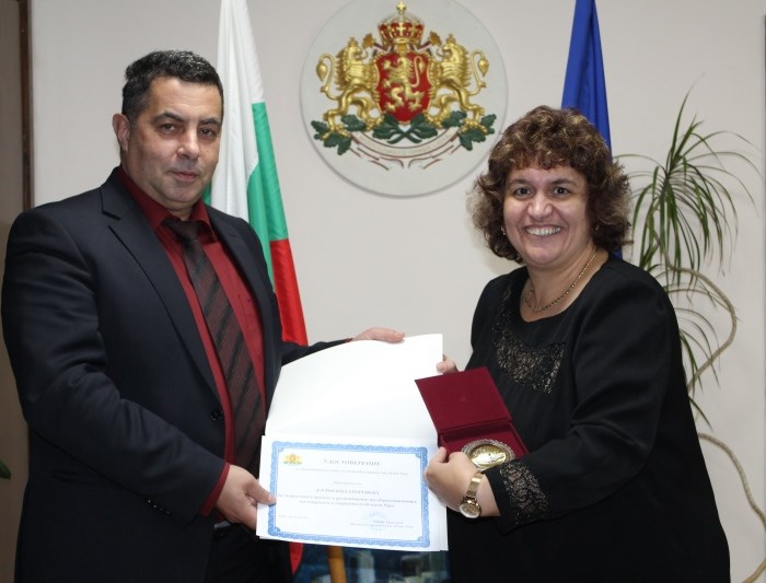Областният управител на област Русе г-н Галин Григоров удостои с плакет за съществен принос в развитието на образованието, културата и науката началника на Регионалното управление на образованието д-р Росица Георгиева.