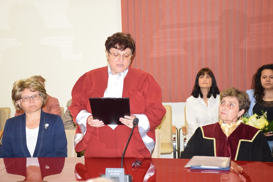 Доц. д-р Анка Кръстева, зам.-декан на факултет "Електротехника, електроника и автоматика", представи почетния доктор, а номинацията бе направена от декана на факултета доц. д-р Вяра Русе.