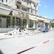 Бетонната конструкция над жилищни входове се е стоварила пред търговските обекти, които се помещават в приземния етаж. За щастие в този момент не е имало хора, пострадали са автомобили, паркиране пред блока.