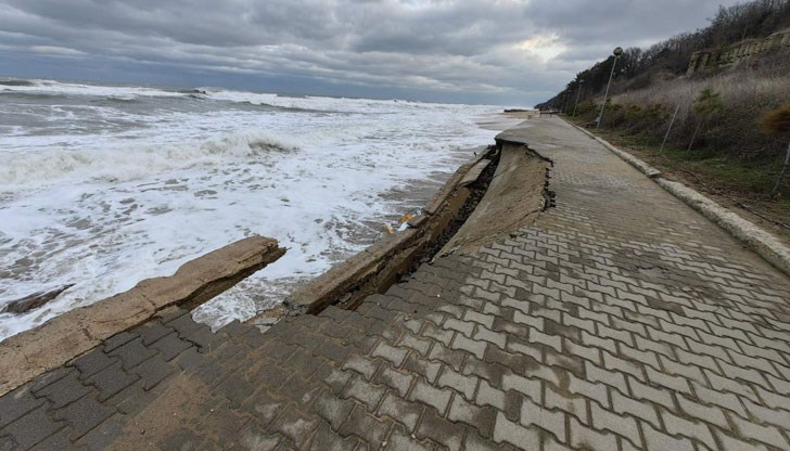 Част от крайбрежната алея в Обзор рухна под напора на вълните. Разрушеният участък е по протежение на 20 метра.