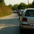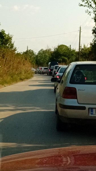 Екипи на полицията дежурят на кръговото кръстовище пред граничния пункт и пропускат поетапно колите от трите направления към моста, но превозните средства са твърде много, а пропускливостта на моста малка. Така че придвижването става изключително бавно.