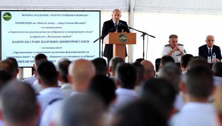 На тържествена церемония във Военната академия „Георги Стойков Раковски“ днес, президентът и върховен главнокомандващ на Въоръжените сили Румен Радев се обърна към новозавършилите офицери от „Випуск 2024 - „Цар Симеон Велики“. В словото си, президентът подчерта, че българската армия се нуждае от лидери, които да привличат и мотивират най-ценния ресурс - хората.