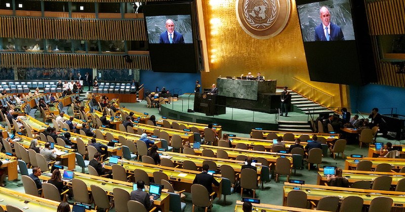 Консенсусът, че човечеството може да живее на основата на международно установени правила, е брутално потъпкан, заяви Румен Радев и напомни, че тези правила са били изковани именно в залата на Общото събрание на ООН. В същото време в различни региони на света демокрацията и човешките права са подложени на атаки и ерозия, а на тяхно място се утвърждава авторитаризъм.