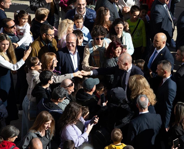 По повод празника президентската институция отвори врати за граждани, като първите посетители бяха посрещнати от Румен Радев и Илияна Йотова.