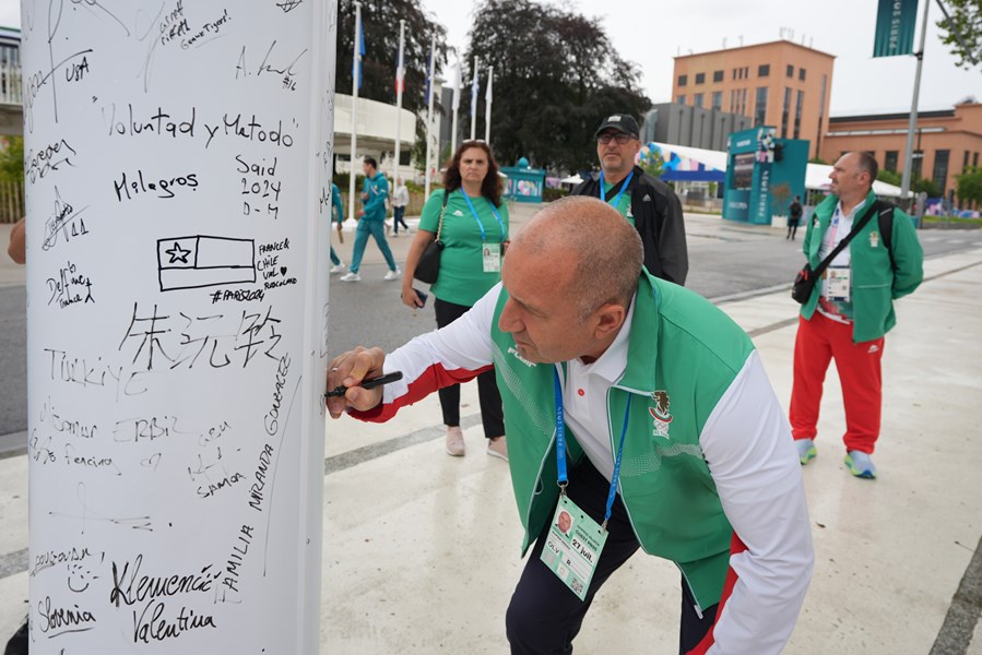 Президентът Радев остави послание за мир на Стената на олимпийското примирие с думите „Спортът е мир“, като подчерта значението на спорта като средство за единство и разбирателство.