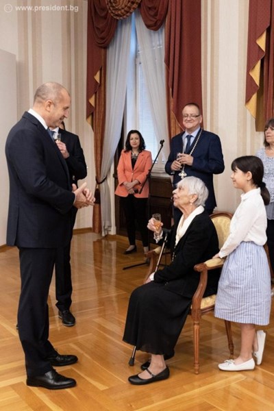 „Днешната церемония в Гербовата зала е израз на дълбоката обществена признателност за вашия професионализъм, талант и извоюван висок обществен авторитет. Целенасочените ви усилия, последователността и енергията, с които работите за културния и духовен напредък на България, заслужиха уважението на вашите колеги и съмишленици, на българската публика и на цялата общественост“, подчерта държавният глава по време на церемонията, предадоха от прессекретариата