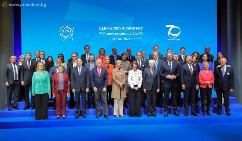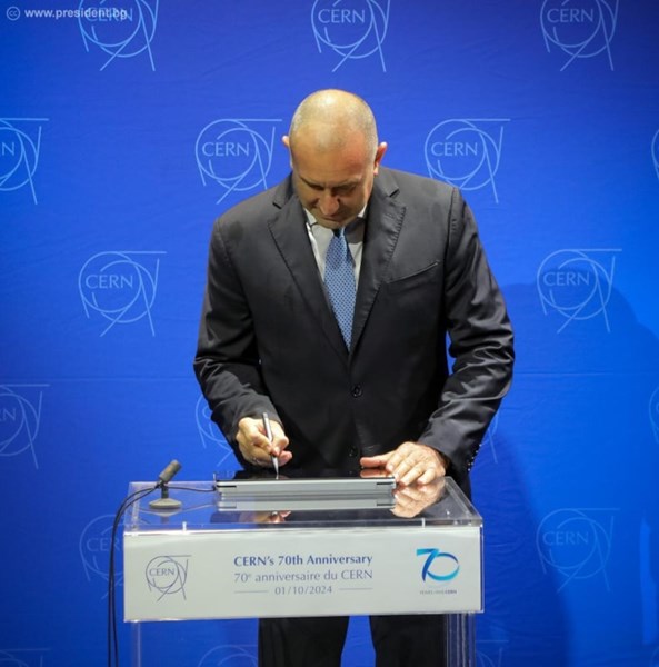 На тържествена церемония в Женева, посветена на 70-годишнината от създаването на Европейската организация за ядрени изследвания (ЦЕРН), българският президент Румен Радев изтъкна значимостта на организацията не само като водещ научноизследователски център, но и като пример за успешно международно сътрудничество в полза на човечеството.