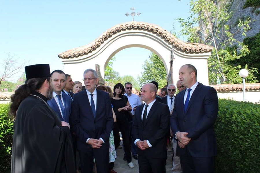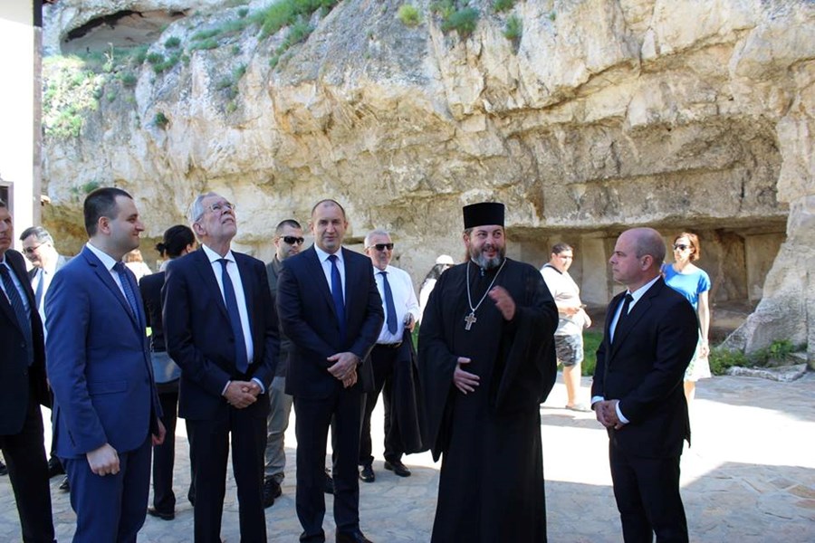 Президентите на България и Австрия Румен Радев и Александър Ван дер Белен посетиха единственият действащ скален манастир в България, край Басарбово.
