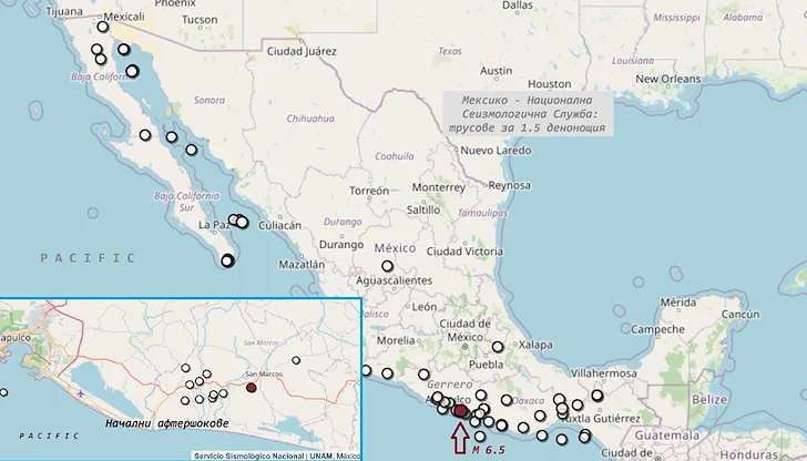 Земетресение с магнитуд 6.5 разлюля щата Гереро в Южно Мексико в петък сутринта (2 януари) в 07:58 часа местно време. Според експертния анализ на сеизмолога Румяна Главчева, епицентърът е локализиран на сушата, като има единодушие за силата на труса между Националната сеизмологична служба на Мексико и световните центрове в Европа и САЩ.